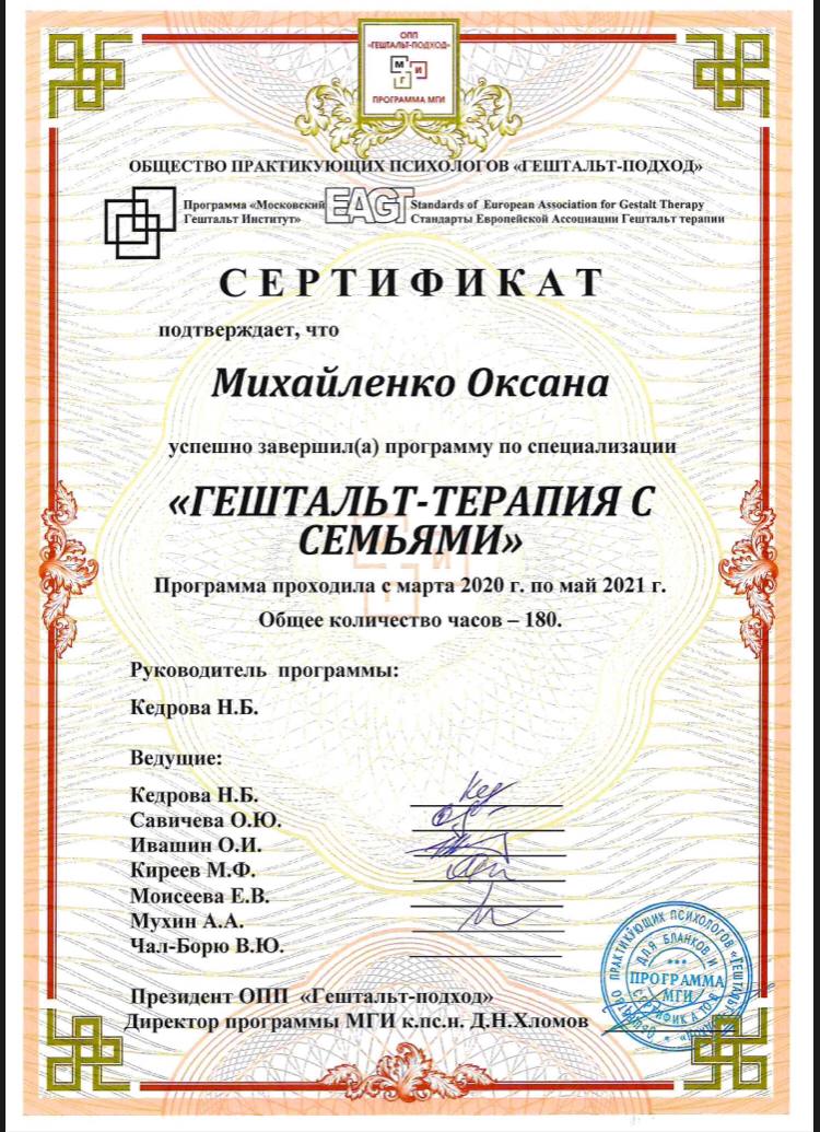 Дипломы и сертификаты психолога
